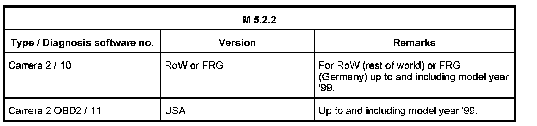 - To enable the Diagnosis Software No. to be completely tracked, the Software No. is listed in this chapter as of M 5.2.2.