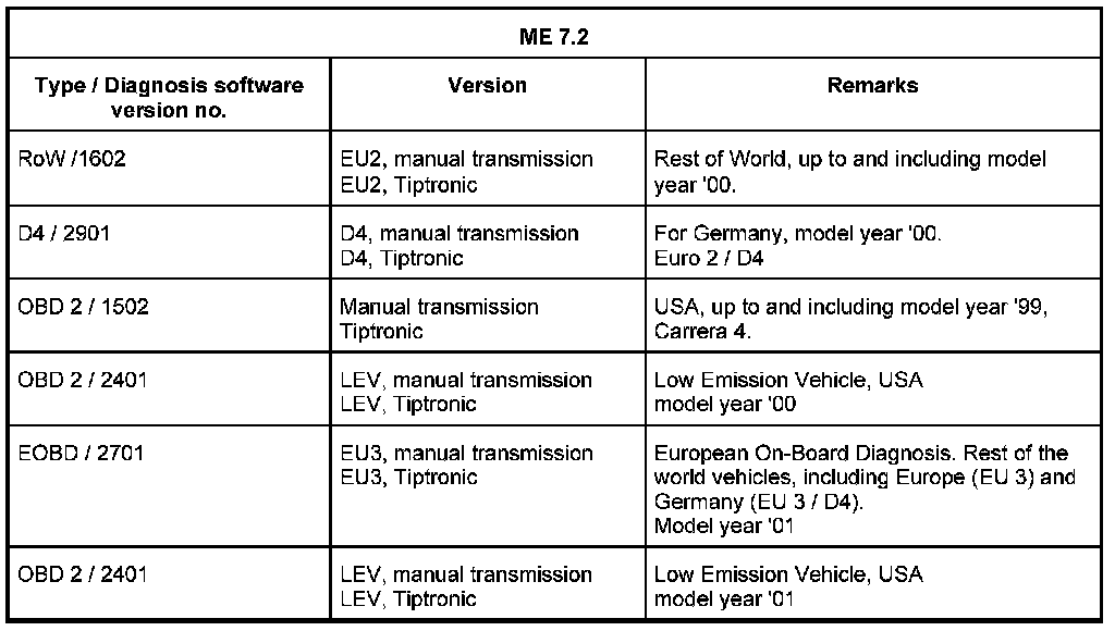 - If the DME control module from a different 911 Carrera (996) vehicle with ME 7.2 is being used, proceed as follows. As a check, the DME code and the immobilizer code of the vehicle in which the control module is being installed (NEW) and of the vehicle from which the control module has been removed (OLD) are required.