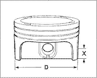 Piston SpecificationsCheck piston diameter -D- on oil piston shank with micrometer gauge. Measured from the lower edge of the shank, the height -X- on the shank is 16 mm.