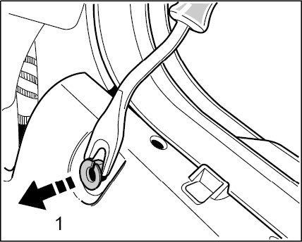 3. Unlock locating peg -1- of the support using the commercially available removal tool.