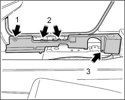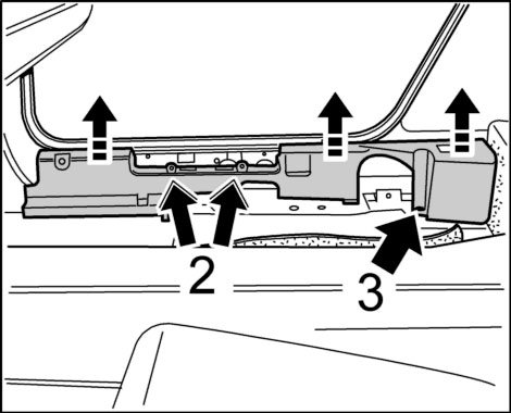 4. Unscrew fastening screws -2- and nuts -3- and carefully pull the support up and out of the retaining points.