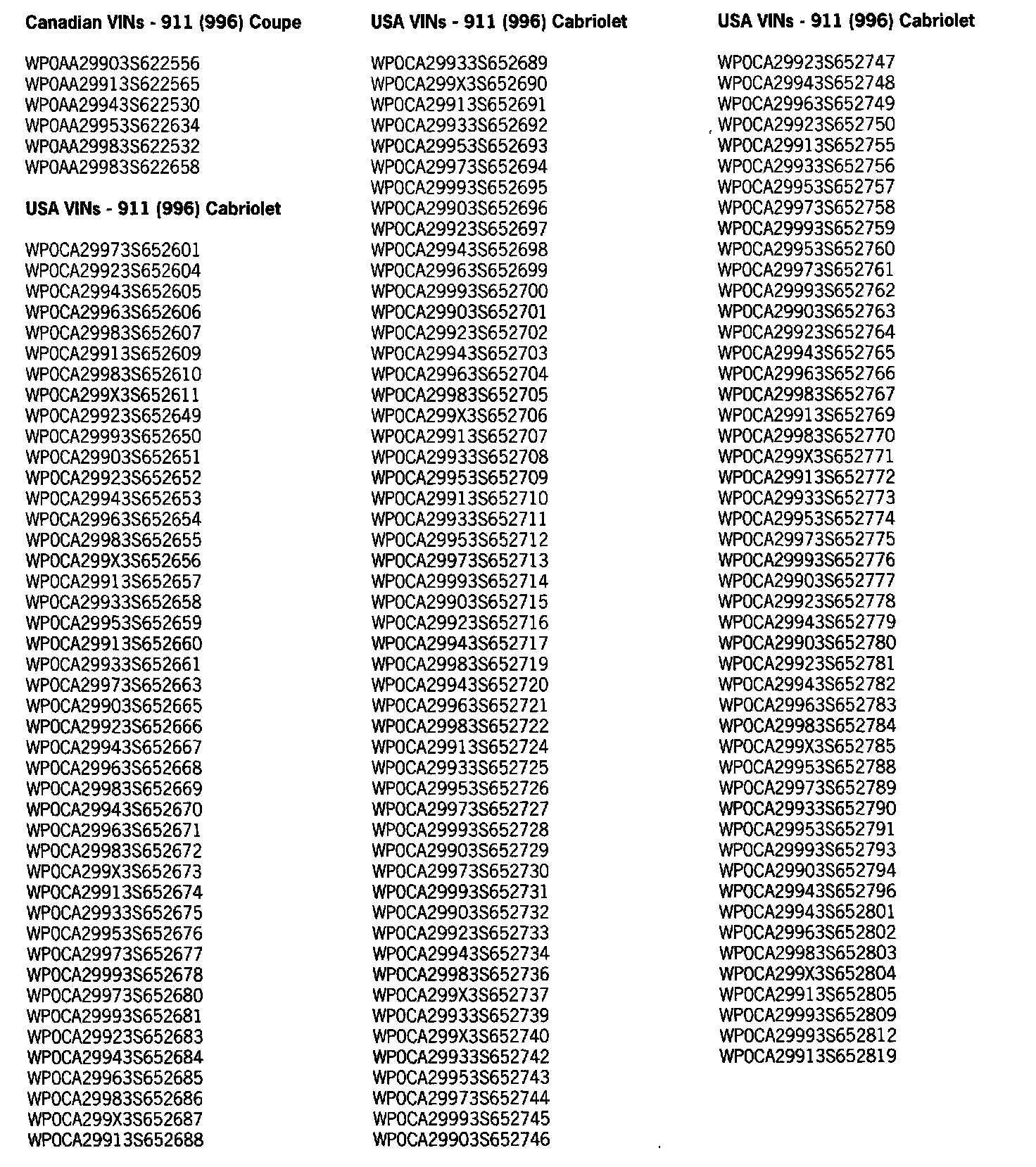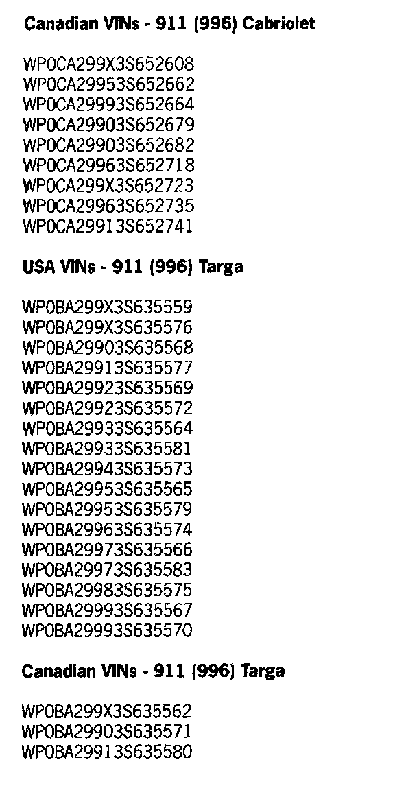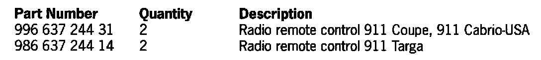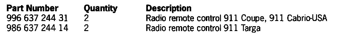 Therefore, we ask that the affected vehicles listed below have both key remotes replaced (spare key not affected) during the Porsche Owner's next visit to your workshop.