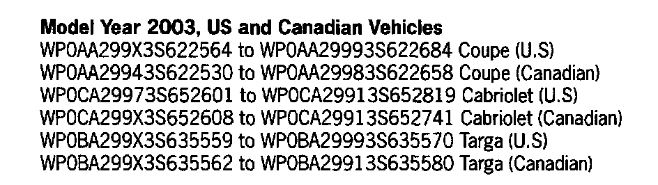 This is to inform you of a voluntary Workshop Service Action on certain 2003 model year 911 Carrera (996) and 911 Carrera 4 (996) vehicles, equipped with key remote control (keyless entry) system. The remote release of luggage compartment and/or doors will not function at times. Faulty internal key remote transmitter drivers for the 315 MHz remote control will cause this condition.