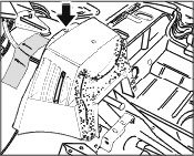 3. Engage electrical plug connection and route wire carefully. Install control module cover, seat wells, belt buckles and centre console.