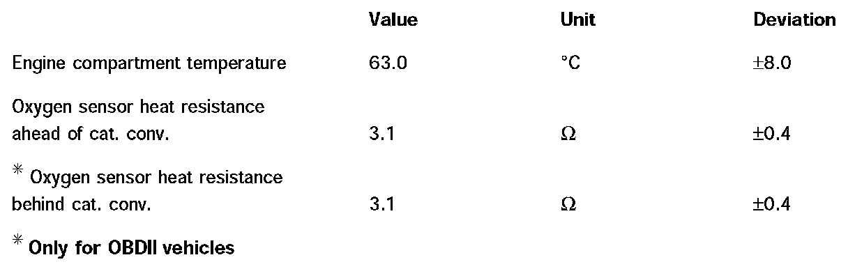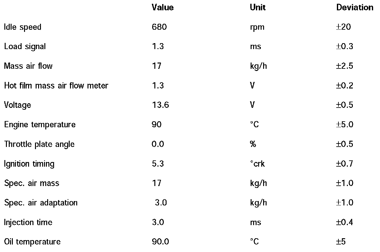 NOTE: The stated values are the result of measurements of vehicles with different mileages and in perfect condition. Different values can result from diagnosis in the workshop because of mileage and environmental influence. For DME diagnosis, it is important to look at several values simultaneously and in a collective group during troubleshooting.