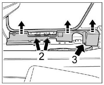 4. Unscrew fastening screws -2- and nuts -3- and carefully pull the support up and out of the retaining points.