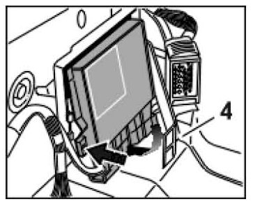 7. Pull control module out of the holder and pull it out downward at an angle.