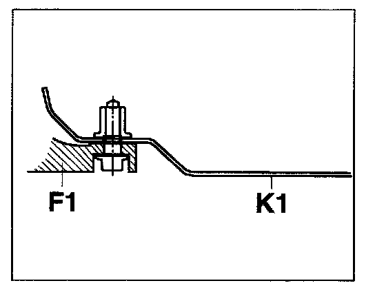 - Front-axle cross member with one fastening bore -F1- and body with one fastening point -K1-.