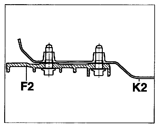 - Do not install front-axle cross members with one fastening screw (F1) in vehicles with two body mounting points (K2).