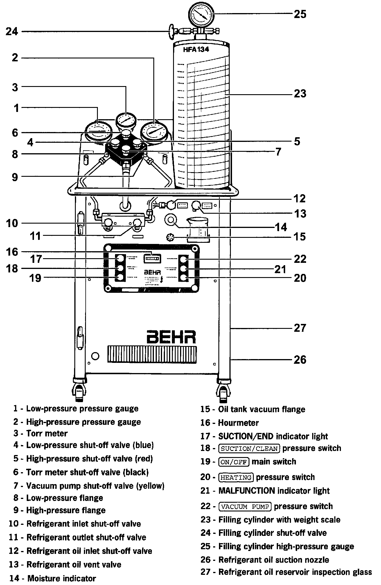 NOTE: In the event of insufficient refrigeration performance, remove the refrigerant by suction, top up with the stipulated quantity and check the system for leaks.