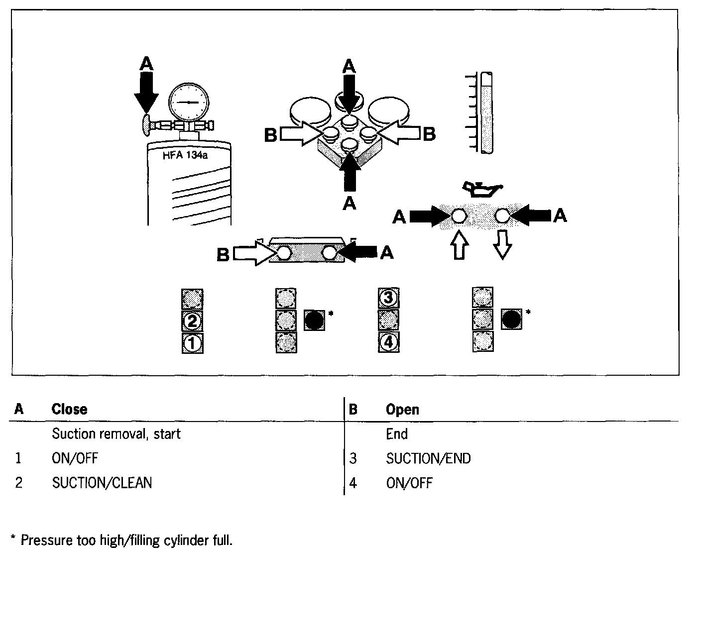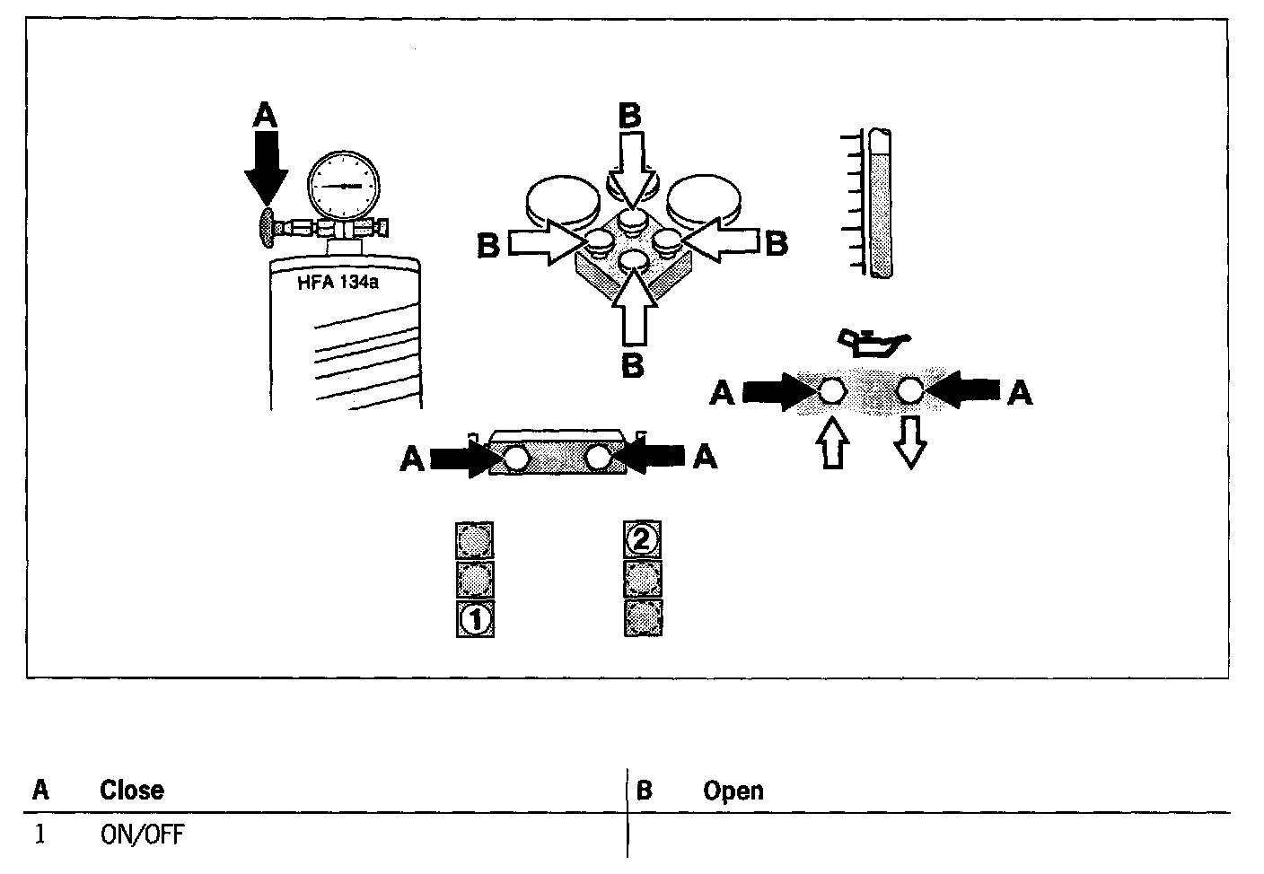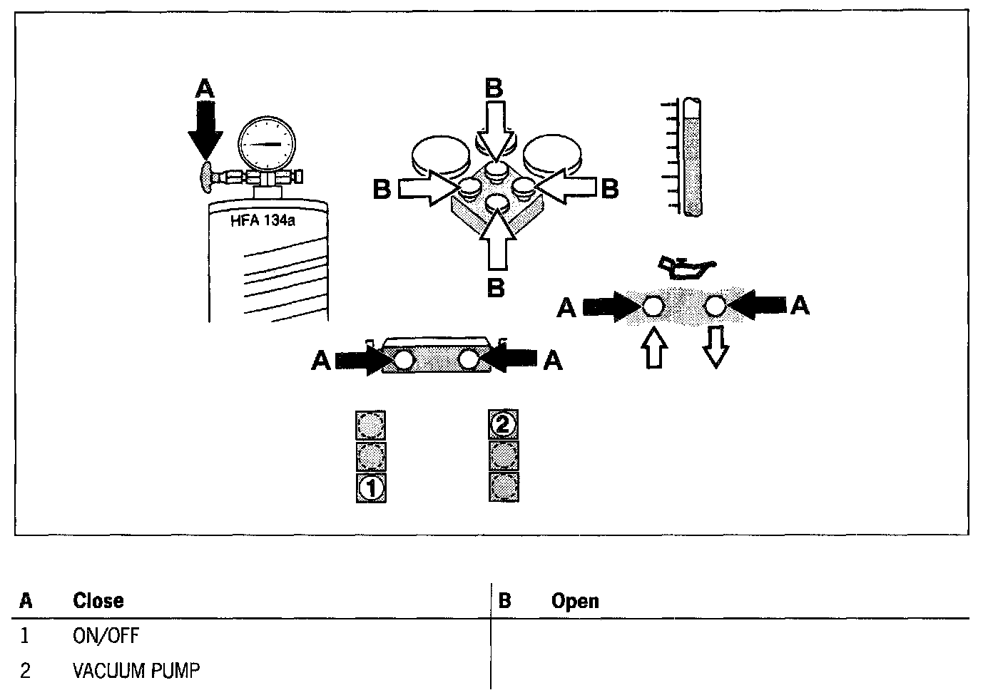 - After the refrigerant has been removed by suction and a component has been replaced, the oil quantity must be determined and topped up by the quantity remaining in the removed component.