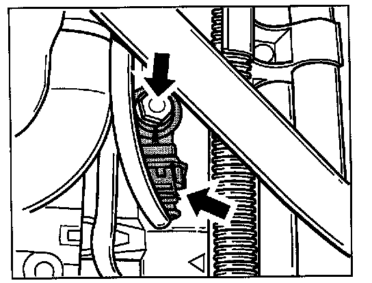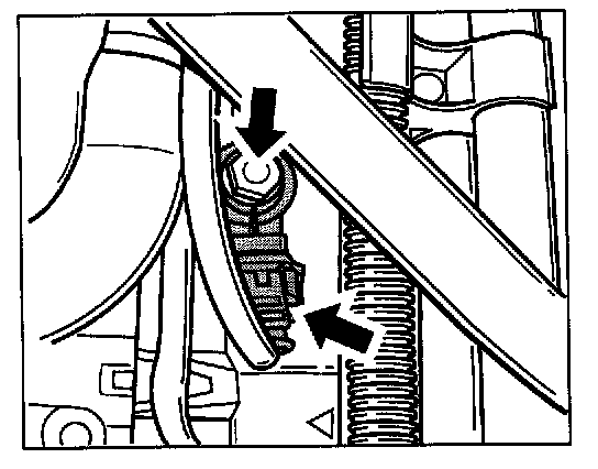 1. Disconnect plug -lower arrow- of the knock sensor and set it aside. Unscrew M8 hexagon-head bolt -upper arrow- and remove the knock sensor.