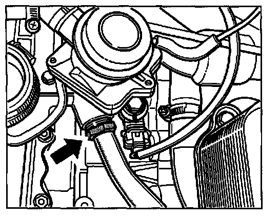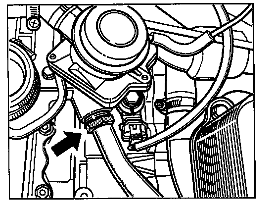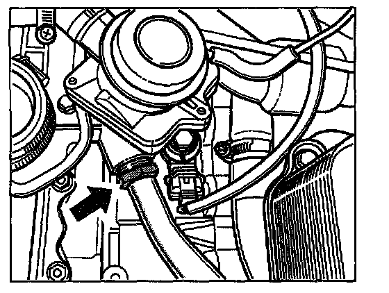 2. Undo the crankcase ventilation tube. Unscrew the union nut -arrow- for this purpose.