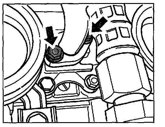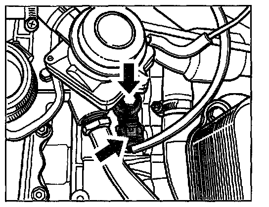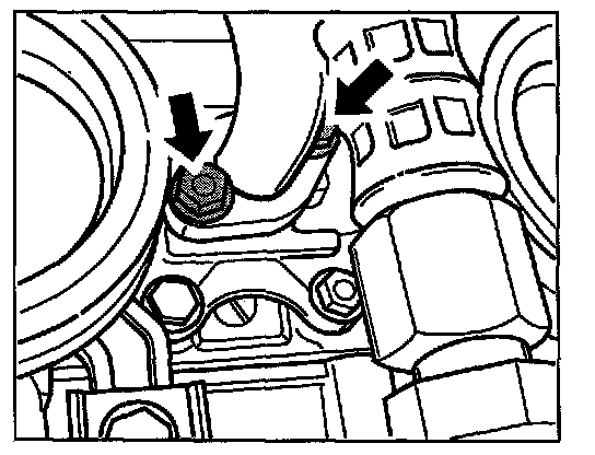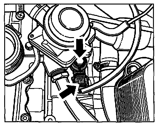 5. Unscrew screw -upper arrow- of the knock sensor and remove the knock sensor.