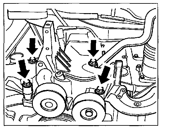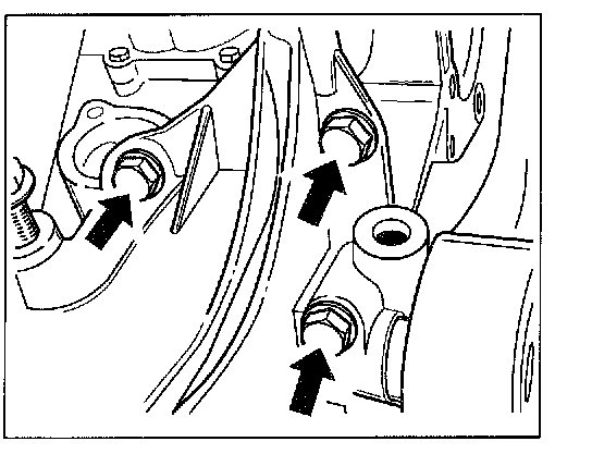 12. Detach bracket for generator. Unscrew the four fastening screws -arrows- on the bracket for the generator.