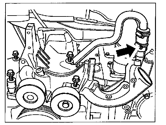 10. Unclip coolant hose. To do this, unclip the safety bracket on the coolant neck with a screwdriver and pull the coolant hose up and out.