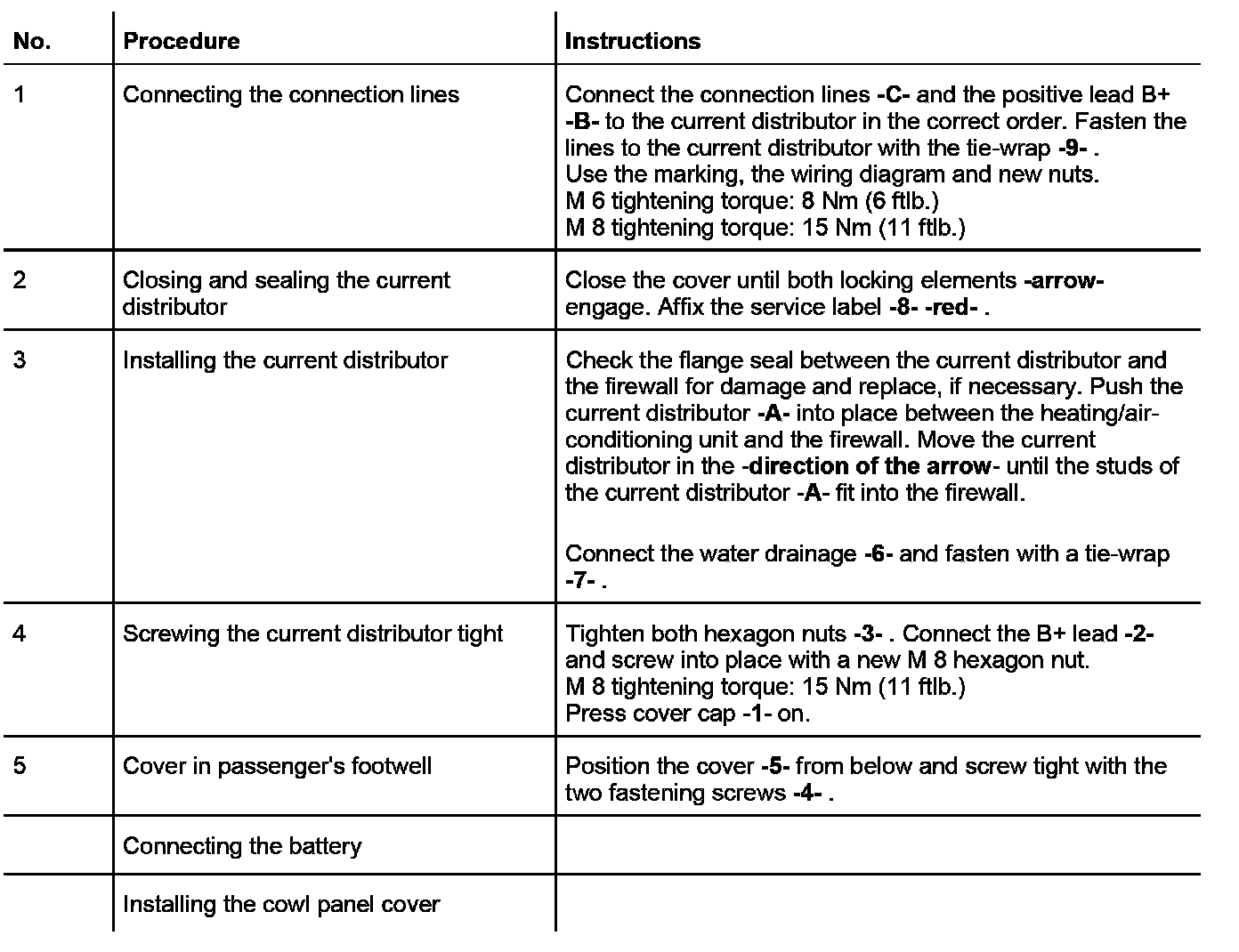 - Depending on condition, flange seal current distributor/firewall