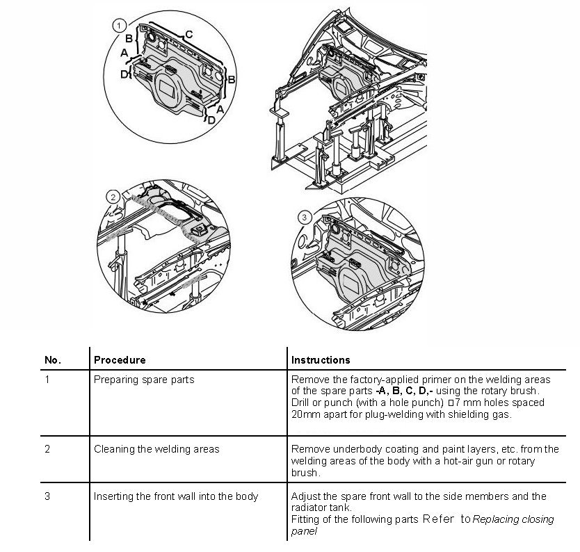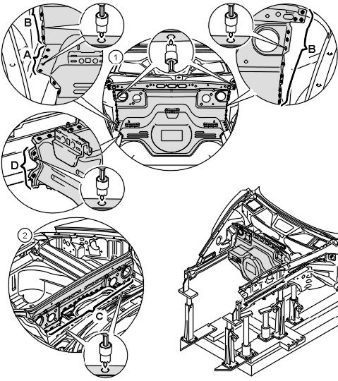 - All straightening work on the body in this area must have been completed before the damaged parts are removed.