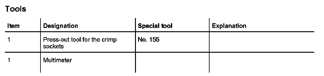 In the case of the complaint "seat heating does not function", proceed according to the following work instruction. Work aids: Use wiring diagram and multimeter.