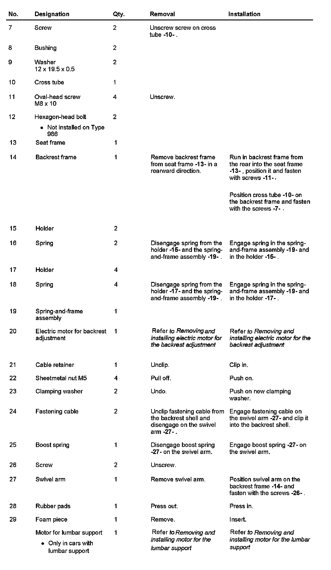 Disassembling and Assembling Backrest Frame