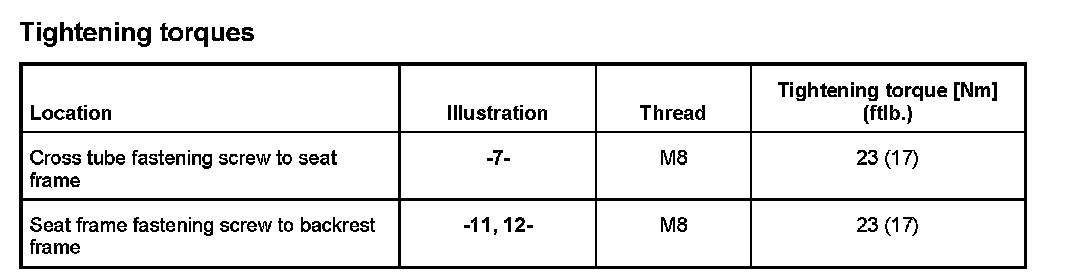 Tightening torques