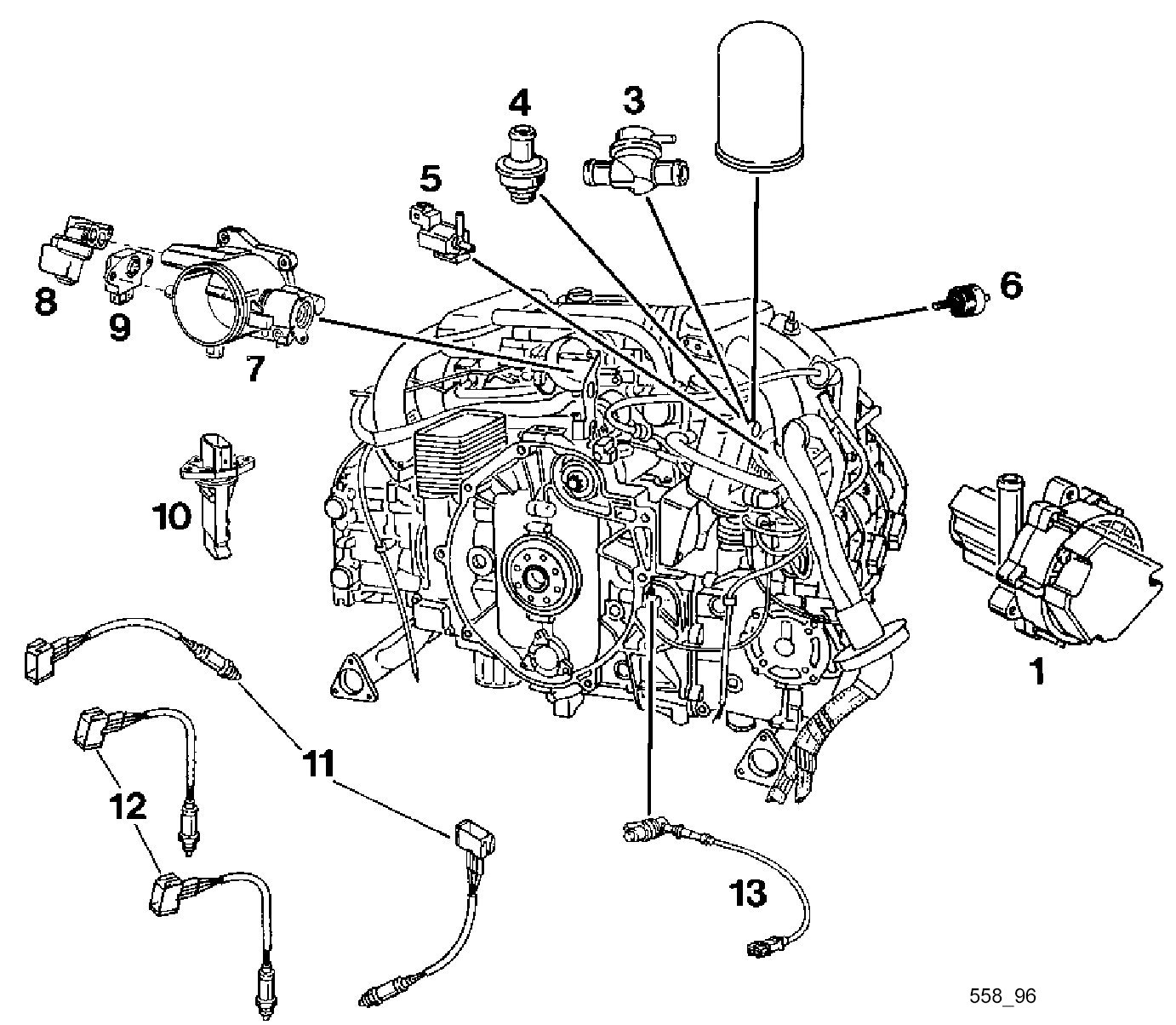 Components No. 1, 3, 4, 6, 12 are installed only on OBD II vehicles.