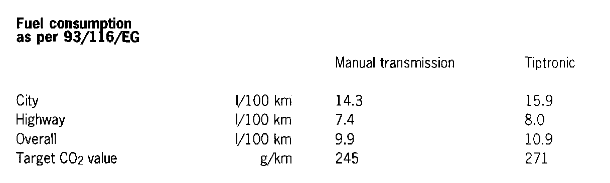 Fuel consumption as per 93/116/EG