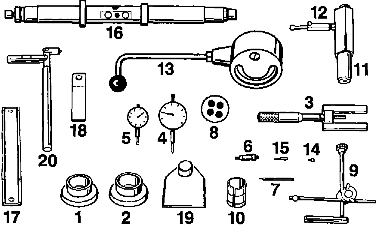 - Assemble the measuring tool and set the dial gauge with 1 mm preload to "0".