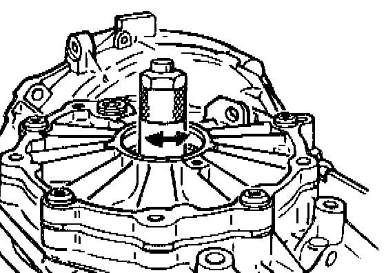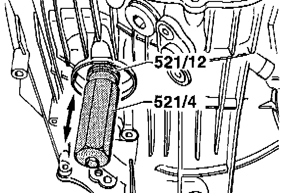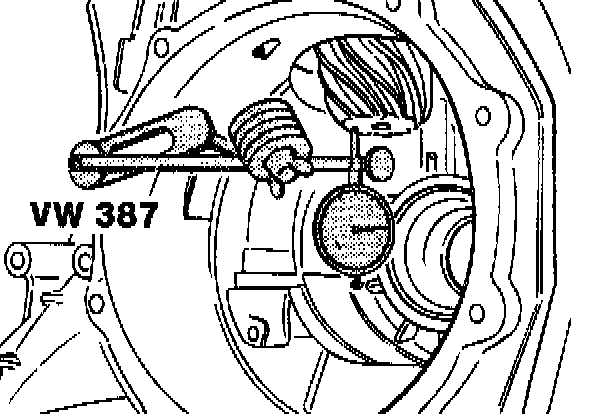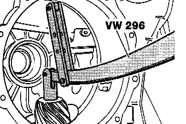 - Using the special tool VW 296, press on the output shaft head until the tapered roller bearing outer race fits closely in the transmission case cover.