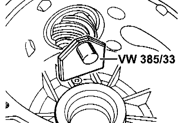 - Place the end plate, special too[ VW 385/33, onto the output shaft head.
