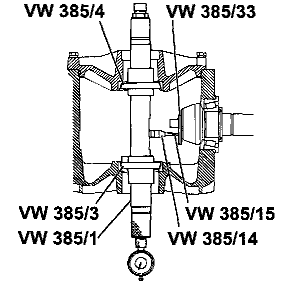 5. Carefully remove the special tool VW 387 with the dial gauge.