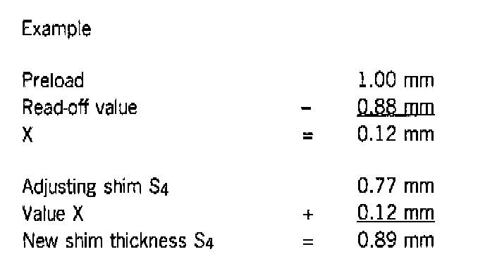 Note If the read-off value on the dial gauge is greater than 1.00 mm, the thickness of the adjusting shim "S4" must be reduced by the value X.