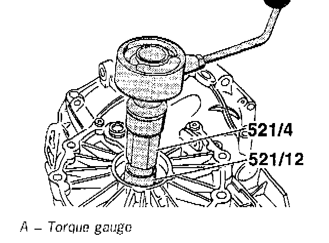 10. Measure the friction torque with a commercially available torque gauge (0 ... 600 Ncm (0 ... 53 inch lbs.)). It must be 250 ... 350 Ncm (22 ... 31 inch lbs.) in the case of new tapered roller bearings and it must be 30 ... 60 Ncm (2.6 ... 5.3 inch lbs.) in the case of run-in tapered roller bearings (bearings filled with gear oil).