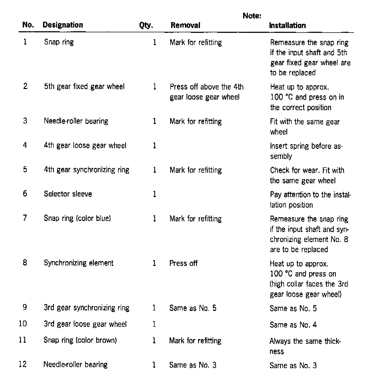 Note Determine the snap ring for the 5th gear in exactly the same way.