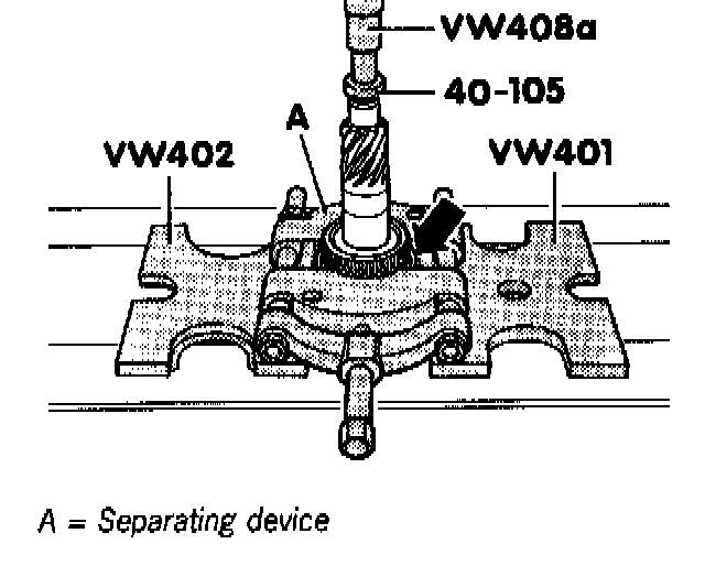 1. Press off the 5th gear fixed gear wheel using a suitable separating device (e.g. Kukko 17/2, 22... 115 mm).