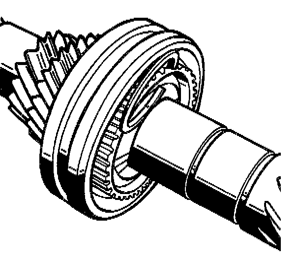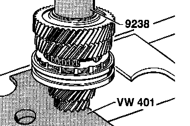 6. Heat the fixed gear wheel for the 5th gear to approximately 100° C and press on (high collar to the reverse gear and the oil pockets to the 4th gear).