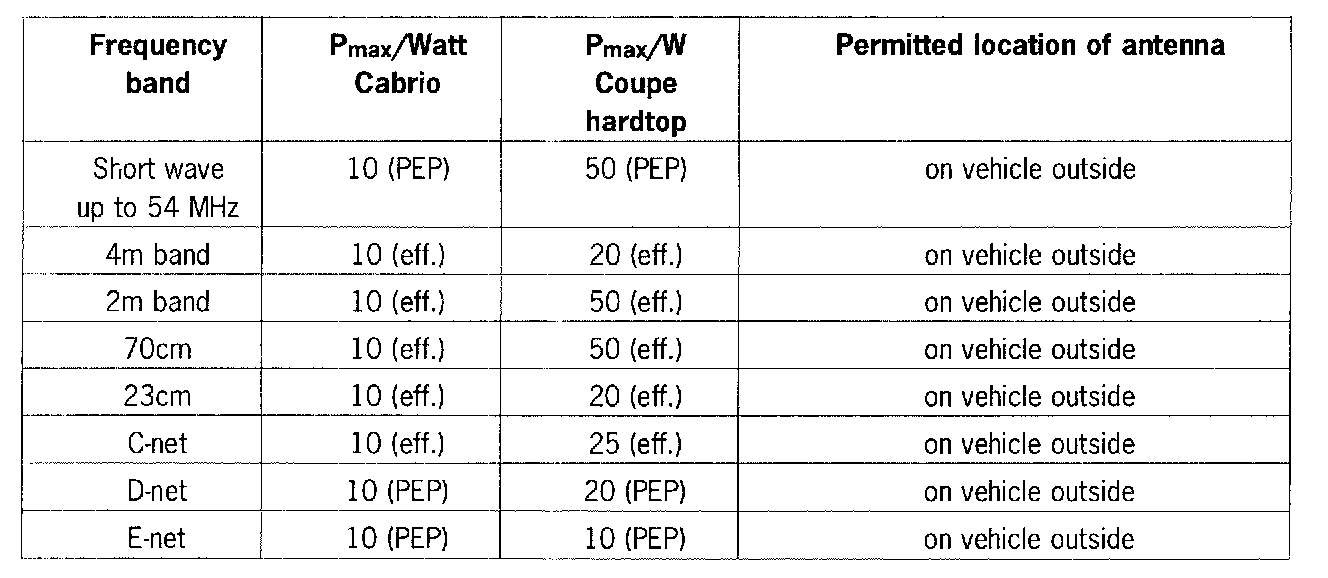 Porsche permits the installation and operation of two-way radios over 10 W for the radio services listed below under the following preconditions: