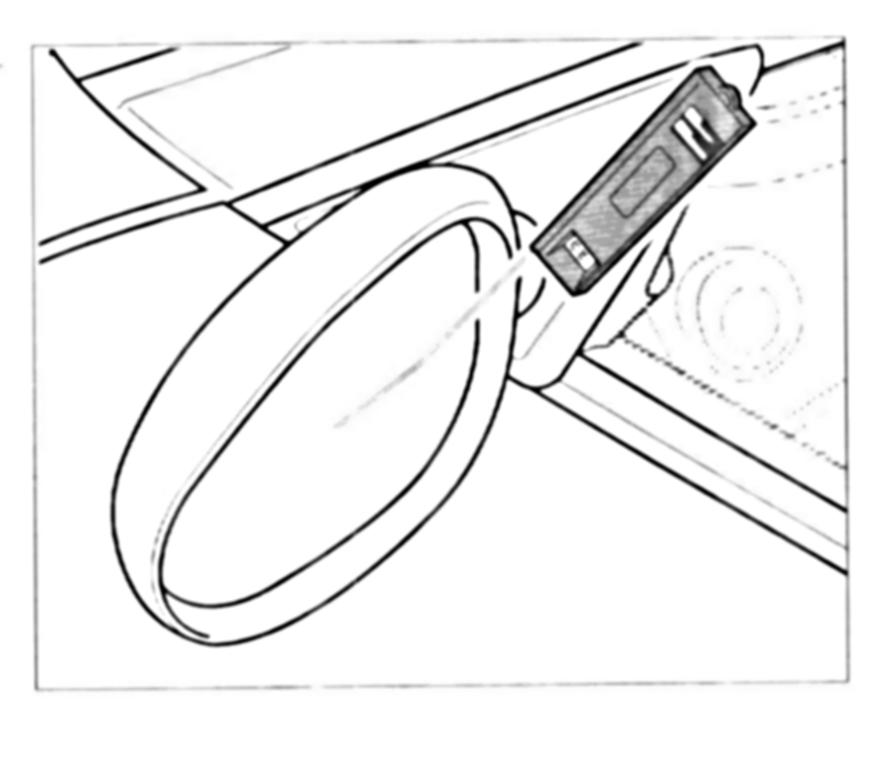 1. Use the tip of the sensor to measure from the outside on the centre of the mirror glass.
