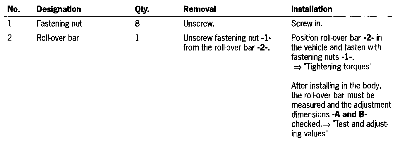 - The roll-over bar -2- can be removed together with the convertible-top if: