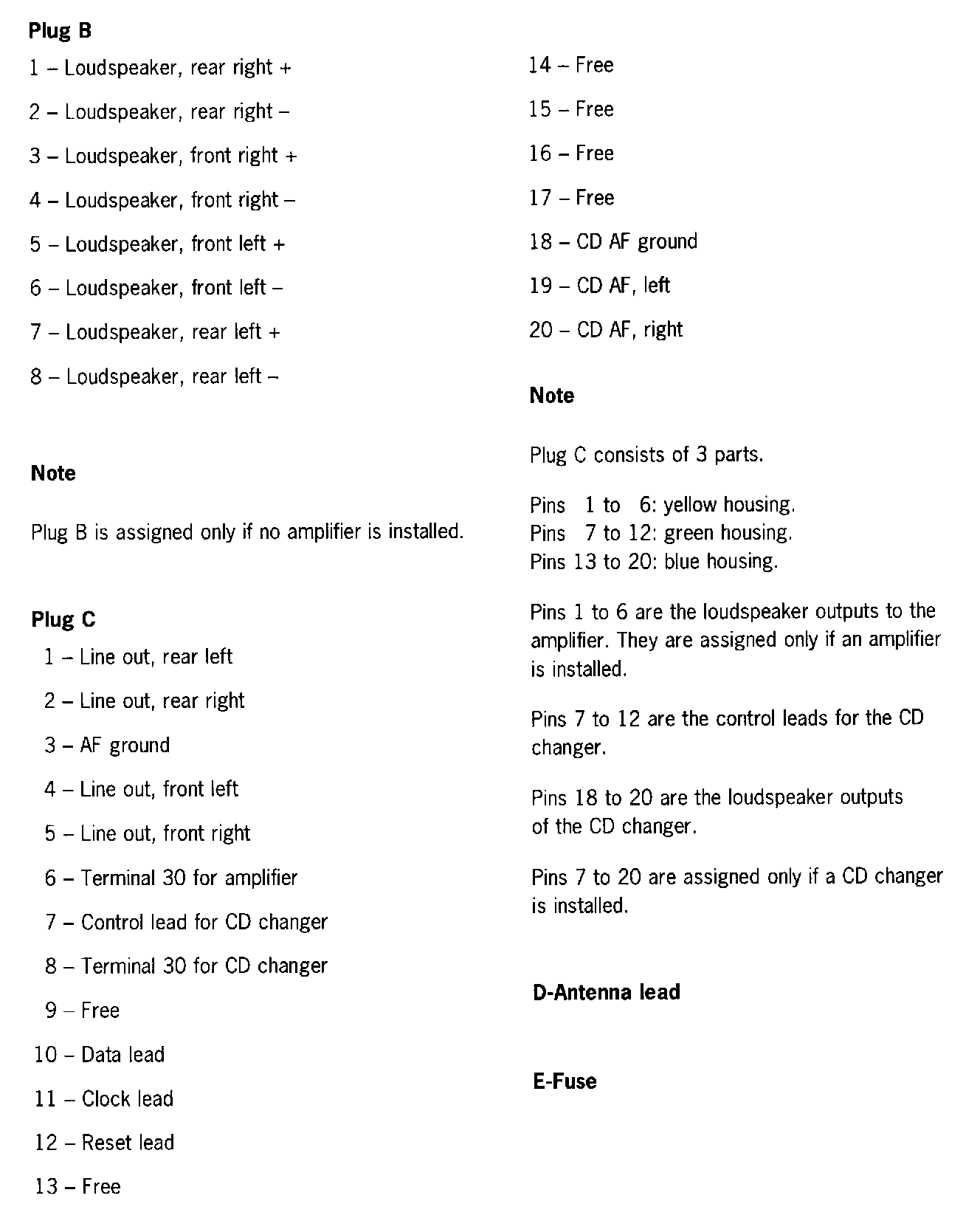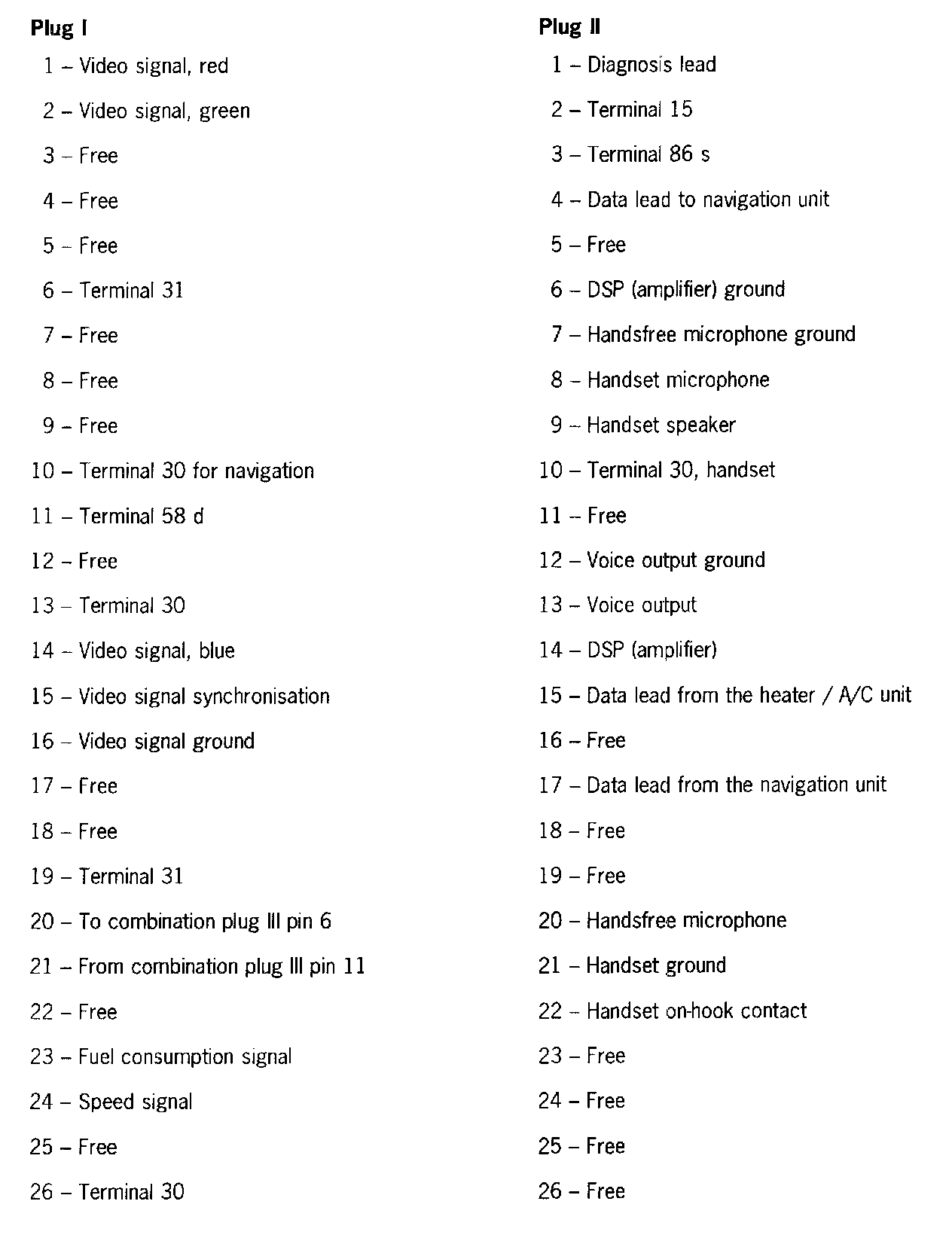 Connector Pin Assignment, Display and Operator