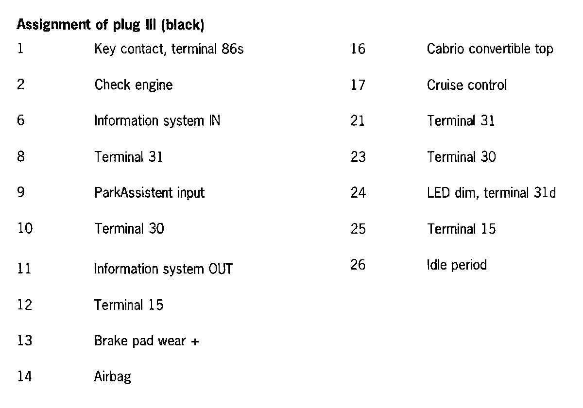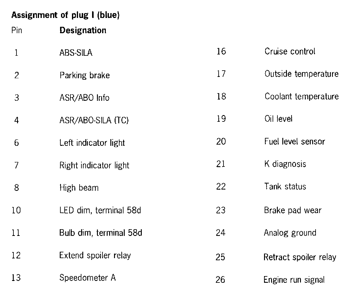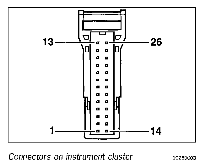Three colour-coded 26-pole connectors are connected to the instrument cluster.