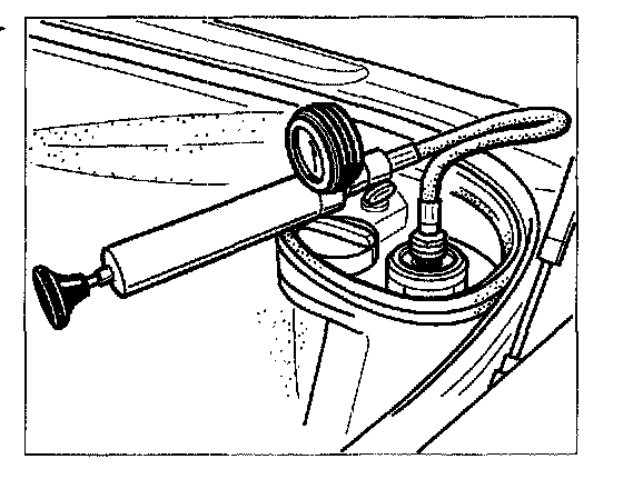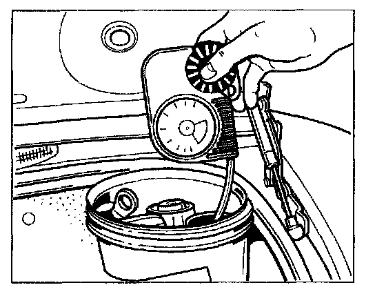 5. Check the cooling system for leaks. To do this, apply a test pressure of approx. 1 bar using the cooling system test device and check the hose connections for leakage or tighten the screw hose clamps. Subsequently remove the cooling system test device.