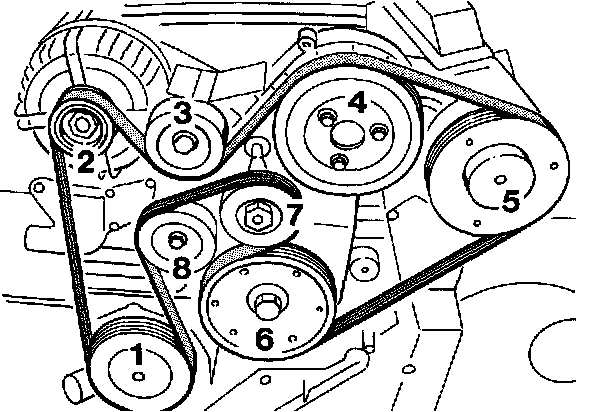 14. Check the drive belt for damage and replace it if necessary. Fit the belt in its original running direction once more. The fitting sequence is shown in the illustration.