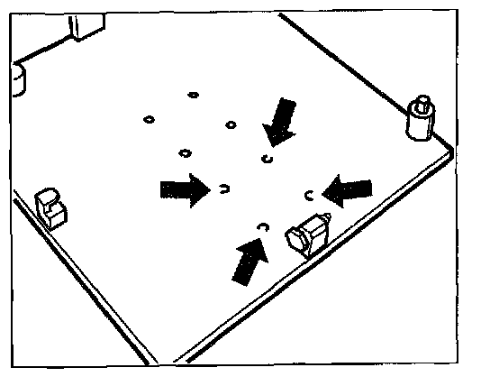 2. Countersink the retainer plate at the designated bores -arrows- with a 9 mm drill bit. The support plate serves as the drilling template.