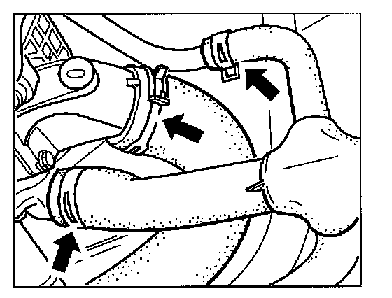 33. Fit all the coolant hoses again. To make fitting easier, the coolant hoses can be wetted with water in the fitting area.