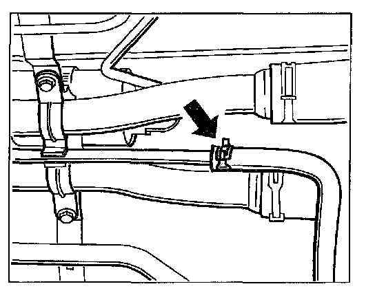 20. Fit the oil filler line. Push the oil filler line back onto the flange and secure with a spring band clamp.
