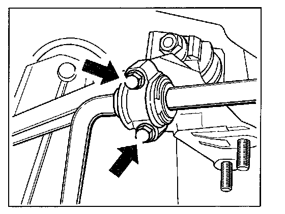 40. Install stabilizer. To do so, insert the stabilizer on the left and right into the stabilizer mount and screw it tight to the two bearing surfaces. The fastening nuts on the mount are tightened with 46 Nm (34 ftlb.). The fastening screws on the bearing surfaces are tightened with 23 Nm (17 ftlb.).