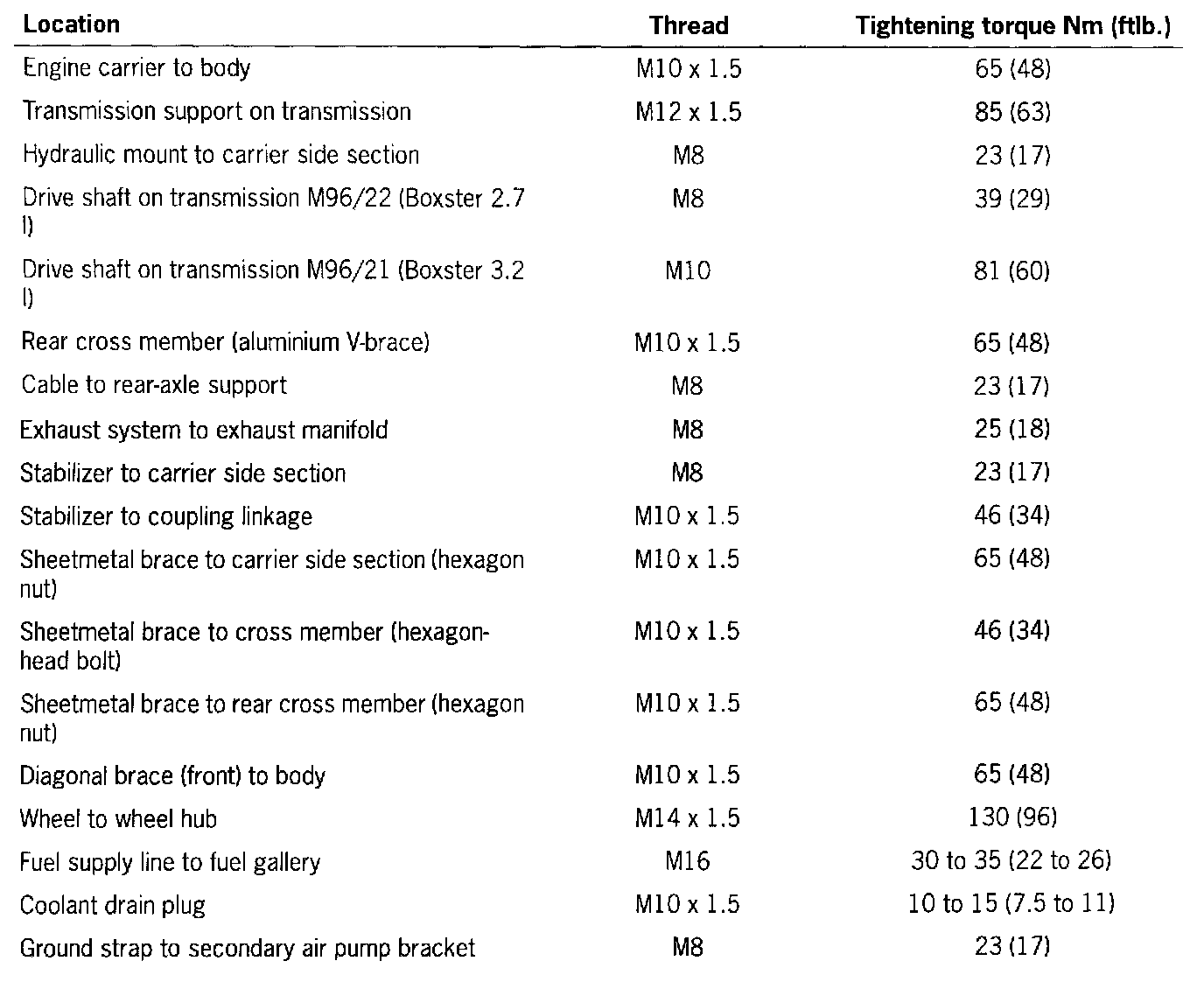 Tightening Torques