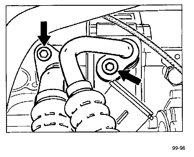 8. Undo the refrigerant lines at the compressor. Immediately close the connections and lines with plugs so that they are air-tight.