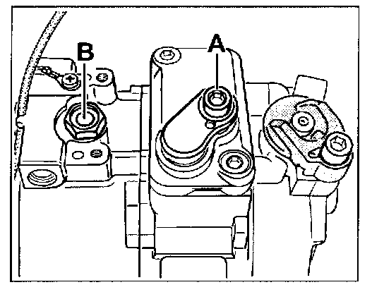 2. Open the oil filler screw (B) on the compressor.